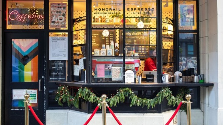 Monorail Espresso is more of a coffee bar than a coffee shop — it's a walk-up coffee shop with no seating, so anyone looking to try Monorail's coffee will order from an outdoor takeout window. They have plenty of quality coffee for anyone looking for a quick cold drink (their americanos, in particular, are always highly rated), but fans of Monorail know that the flavored lattes are where it's at. They offer seasonal specials that are fun and often holiday-themed, as well as specialty flavors. They're also the only coffee shop in Seattle that charges for directions — and it'll definitely cost ya'.