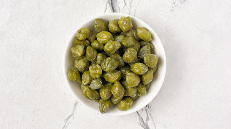 If you want to ease your way into capers' briny flavor, you can also dehydrate and grind them, which makes a seasoning perfect for stirring into your whisked eggs. Whichever way you prefer to incorporate this ingredient, feel free to take your dish a step further and add in herbs like basil or oregano, seasonings like Italian or lemon pepper, or cheeses like parmesan or feta. And don't sleep on tasty mix-ins or breakfast additions like olives, cherry tomatoes, sliced avocado, or lox for a morning meal that's anything but boring.