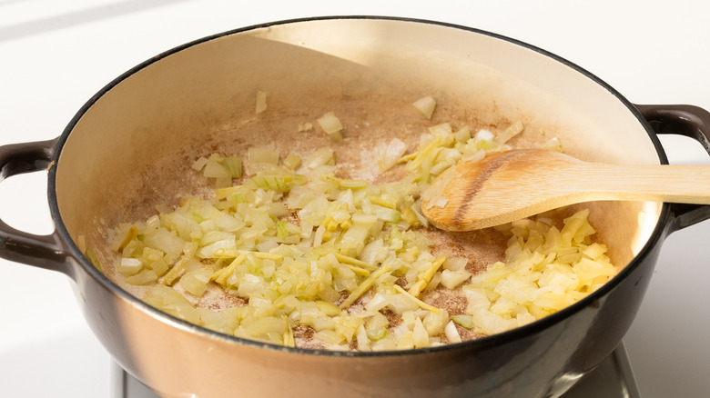 Step 3: Saute the onion, garlic, and ginger