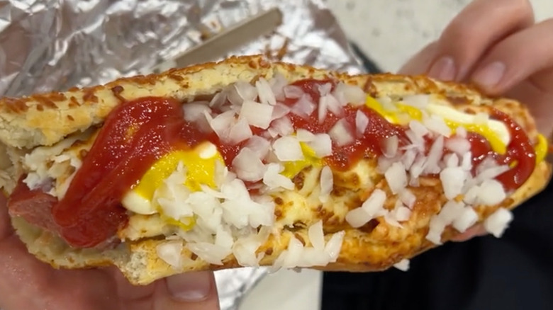 Near the end of 2023, shoppers were experimenting in Costco's food court, and thus was born the Jochizza. The innovative sandwich went viral around October, and it is constructed from many of Costco's food court staples. Costco's food court offers a myriad of snacks for shoppers to dine on while buying in bulk, including a quarter-pound hot dog, hot sandwiches, pizza, and the chicken bake — chicken breast, cheese, bacon, and Caesar salad dressing baked into croquette-like roll.