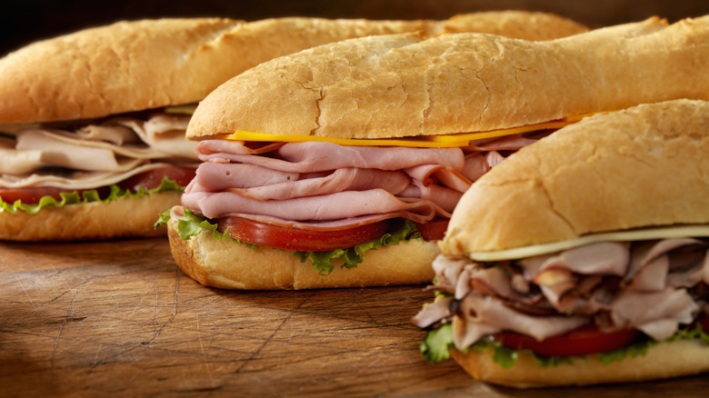 The simple sandwich is the perfect meal to get from the grocery store, though, since all supermarket chains have a deli counter that makes any cheese, protein, or topping you want between your bread easily accessible. A good sandwich can make the perfect meal when you have no time to make anything, you're just too tired to gather the ingredients yourself, or you're simply in the mood for something tasty and classic that goes well with a bag of chips. With selections based on social media reviews and trends, online reviews from verified shoppers, and taste-testing experience, this article will point you toward the grocery stores that have sandwiches you should definitely keep an eye out for the next time you're in need of an on-the-go meal.