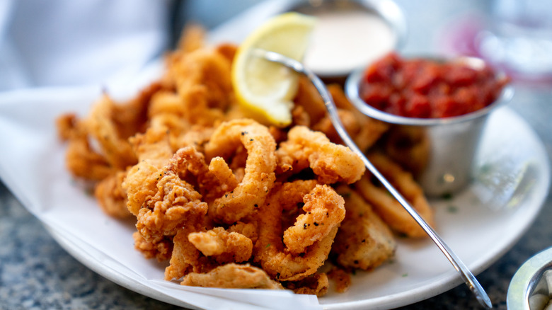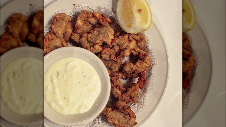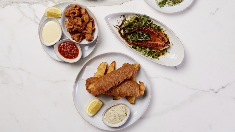 Since prices are sky-high, ranging from around $29.95 to $39.95, we recommend going all in during your visit with one of the restaurant's elevated platters. Our favorites include the fried Maine sea scallops with tartar sauce and French fries, the fried coconut shrimp served with pineapple slices and coconut rice, and the fried Grand Central Oyster Bar bluepoint oysters adorned with tartar sauce and served under French fries.