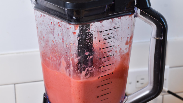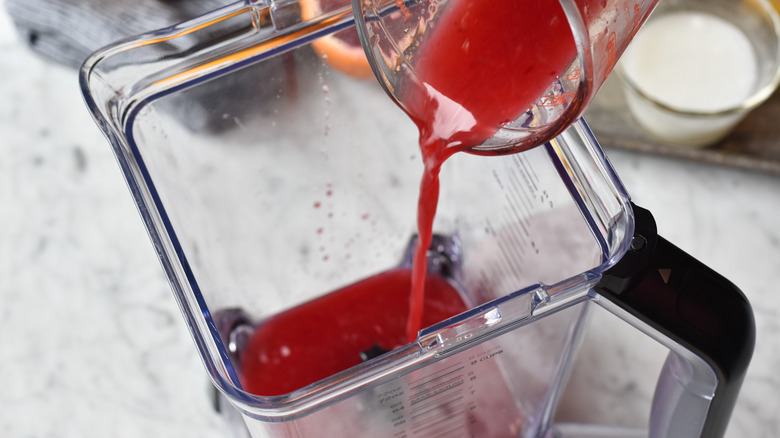 - Add the ½ cup blood orange juice and coconut milk to the blender.