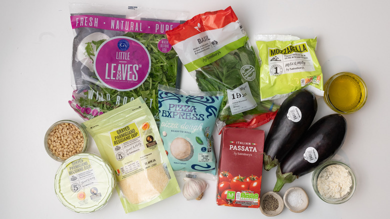 Gather the ingredients for this cheesy eggplant Parmesan pizza recipe