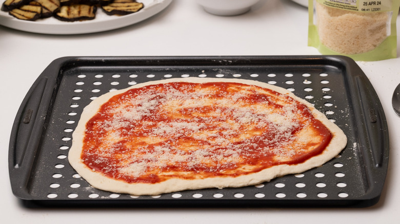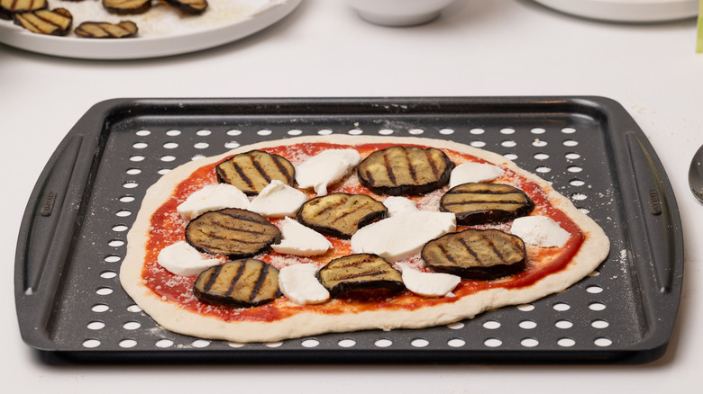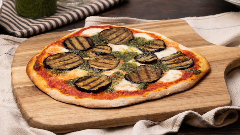 There is nothing quite like freshly prepared pizza straight out of the oven, and for that reason, we recommend cooking only as much pizza as you think you're likely to eat. This isn't one of those dishes you can easily meal prep earlier in the week and store in the fridge unless you keep the individual components separate. However, on the off chance that there are any leftovers of this eggplant Parmesan pizza, we have some tips to help you store it properly to keep it in the best condition to be enjoyed at a later date.