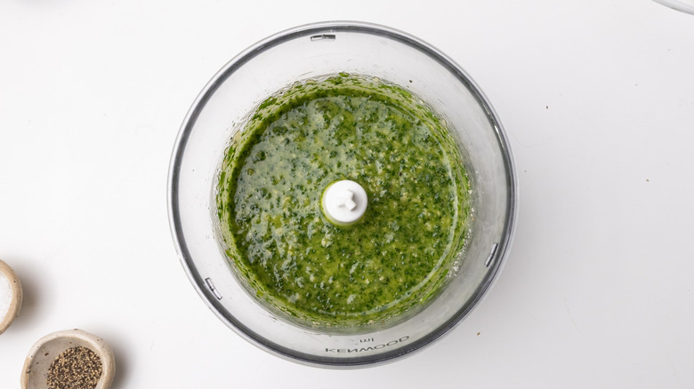- Blend the ingredients to form a smooth pesto, and then set aside.