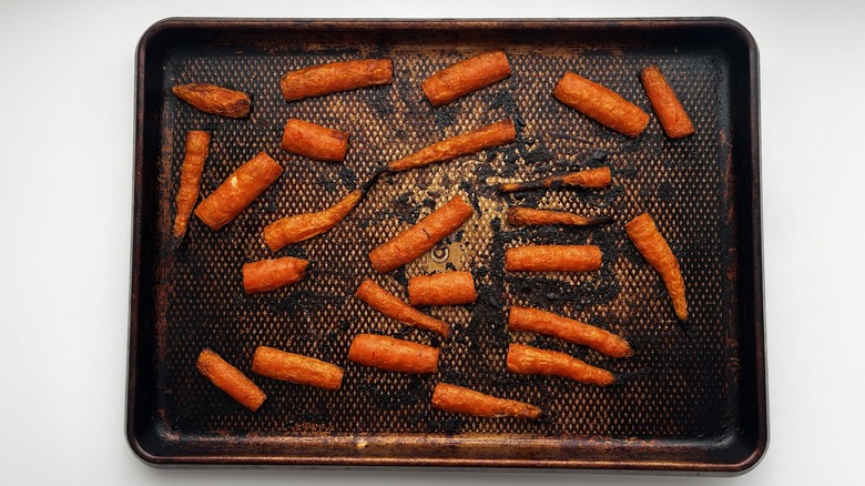 Transfer the roasted carrots to a plate.