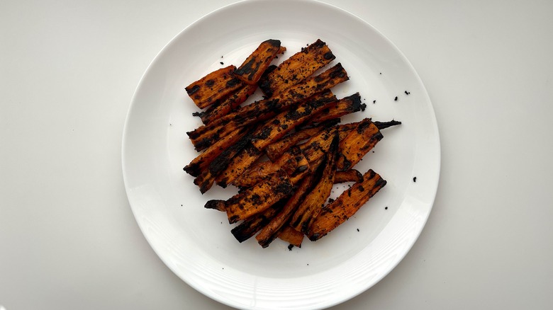 While she notes that butter-roasted Buffalo carrots can be eaten at room temperature, you might want to take the chill off if they're fresh out of the fridge. She tells us they can be reheated in the microwave, but if you have the time, she recommends cooking them for 10 minutes in an oven set to 350 F. This, she feels, will allow them to "get their roasted flavor and texture back." As to what to do with the leftover carrots, she says they're "great tossed in a green salad," and they could also be added to soups, stews, stir-fries, rice bowls, or omelets.