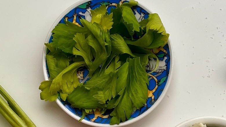 While Le Moing touts the "delicate celery leaves [that are] are scattered over the top [of the dish] for a bright finish," the fact is, you may not have any of these on hand if you don't have celery in the house or if you buy your celery pre-cut into stalks. What's more, celery leaves do have a pretty intense flavor, so if you're not a real celery fan, you might want to choose another green garnish for this dish.
