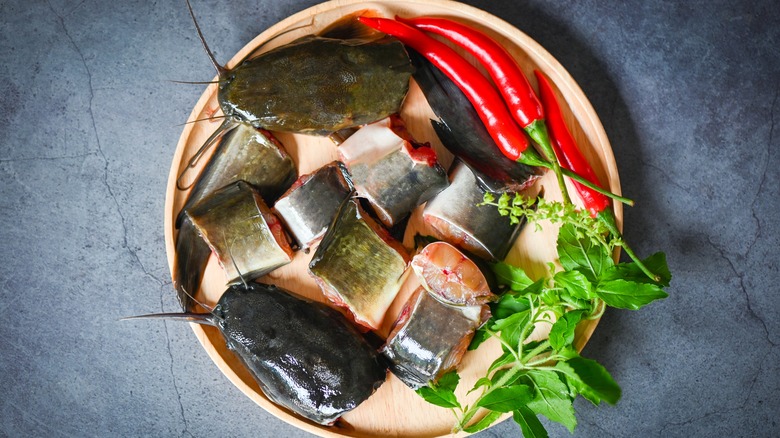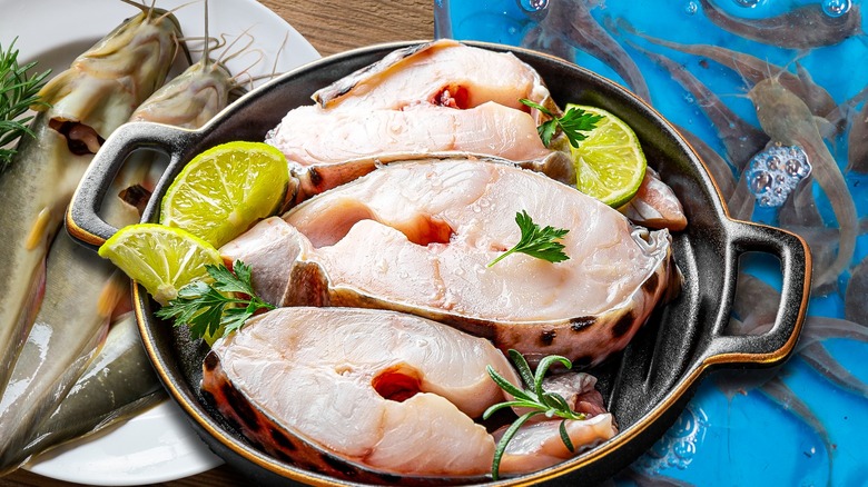Catfish steaks also work well for pan-frying, baking, simmering in a tasty sauce, or serving whole as an eye-catching garnish in a bowl of soup. They're also ideal for preparing en papillote, the classic French technique of cooking fish in a pouch of parchment paper. Catfish steaks are less common than salmon or halibut steaks, so you may struggle to find catfish-specific recipes online, but that's okay. You can easily adapt recipes intended for salmon, halibut steaks, or filets of thicker white fish like cod.