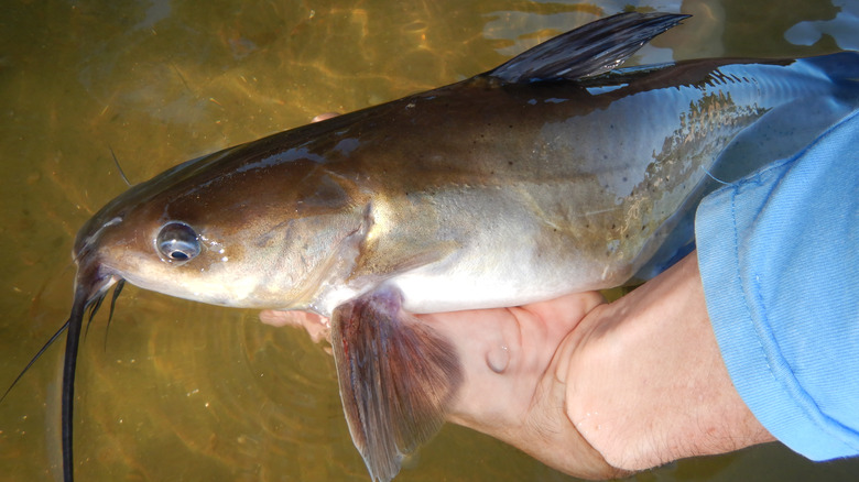 Per USDA, channel catfish account for 90% of the farmed catfish sold in the U.S., while blue catfish, also known as Ictalurus furcatus, is common, too. Blue catfish are meatier than channel catfish but slower-growing, which makes them less suitable for aquaculture. Although some buyers reflexively avoid farmed fish, there aren't a lot of practical differences between farmed and wild catfish. If anything, farmed catfish may be the superior choice because the flavor of wild-caught fish can be variable.