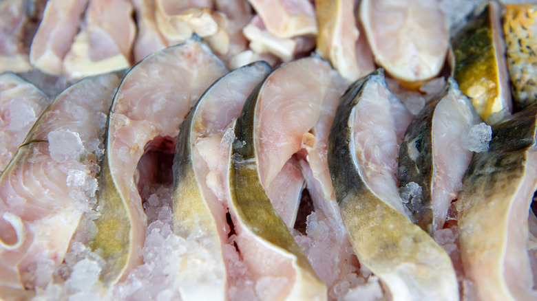This crosswise cut is a pragmatic and frugal option because of its simplicity. It takes minimal time and skill to cut steaks — perfect for those who catch their own catfish. There's also minimal waste because you're leaving no meat behind on the bones, which is appealing if you're buying whole catfish by the pound.
