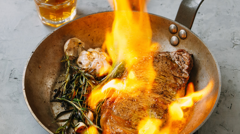 Consider the deep, earthy, subtly gamy tones of beef steaks and roasts that can seamlessly intertwine with the oakiness and subtle sweetness of whiskey. Whether it's a spicy rye or a mellow bourbon with caramel undertones, the marriage is matched. Classic steak au poivre is finished with a creamy peppercorn sauce that usually contains a slug of cognac to deglaze the pan, but whiskey can easily be swapped in for a sauce that has a bit of bite along with peppery heat.