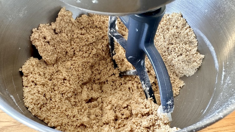 - Make the crumb topping: In the bowl of a stand mixer fitted with a paddle attachment, beat 1 ½ cups flour, brown sugar, cinnamon, ¼ teaspoon salt, and ¾ cup butter until mixture resembles wet sand.