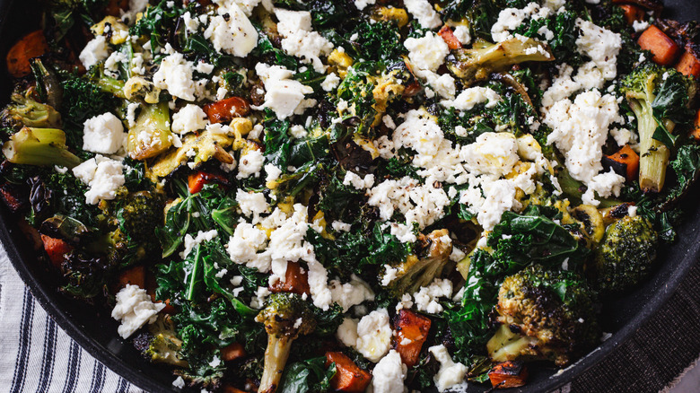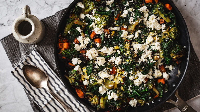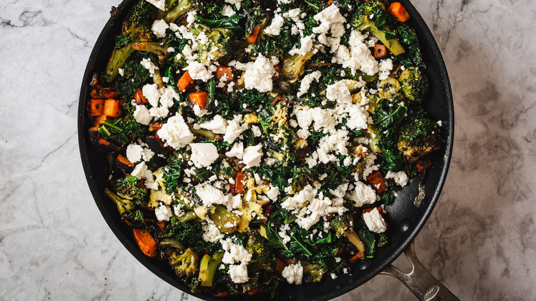 - Crumble the feta into the skillet, then remove the skillet from heat.