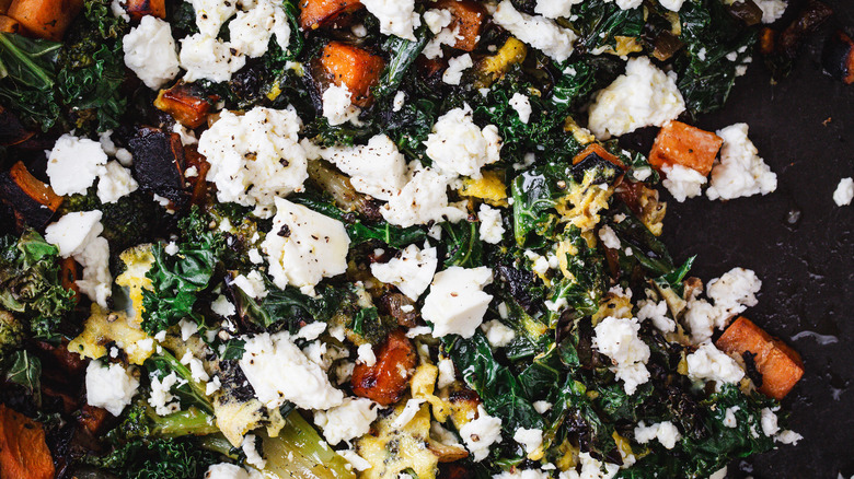 According to Ksenia Prints of At the Immigrant's Table, the combination of vegetables and eggs makes for a satisfying meal that will keep you full and focused all morning long. In fact, the beauty of this recipe lies in its simplicity. All you need is some olive oil, onions, and veggies sauteed together in a skillet before adding beaten eggs to create a scrambled egg mixture. Sprinkle on some tangy feta cheese and season with salt and pepper to taste, and you've got yourself a meal that will keep you going even when the temperatures drop.