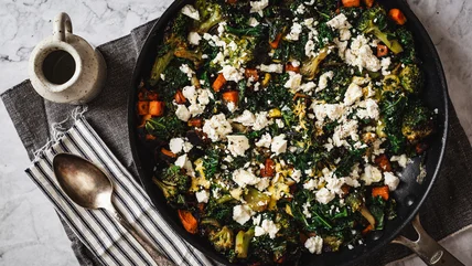 In about 30 minutes, you'll have a colorful, veggie-loaded scramble ready to enjoy for breakfast, lunch, or even dinner. Forget about bland egg dishes — this recipe will brighten up any winter morning. Serve it straight out of the skillet along with some toasted bread for a heartier meal.