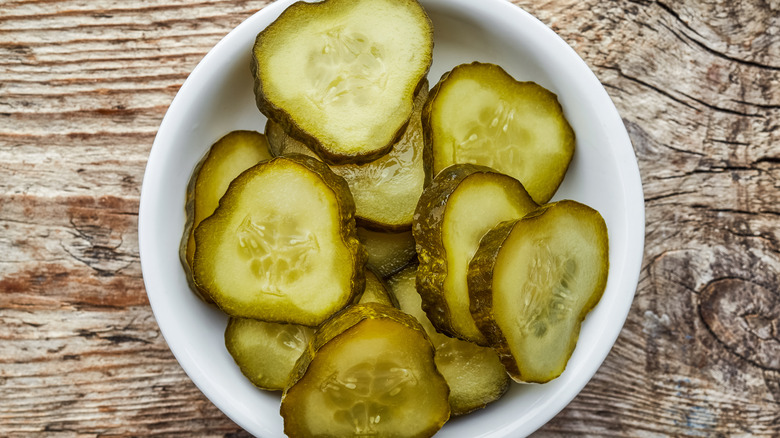 Thicker slices hold up better for handheld bites like fried pickles, also known as fried pickle chips, thus avoiding a floppy, mushy, or messy texture you want to avoid. Even more important, that extra bit of thick pickle in each bite balances out the ratio of pickle interior to breading exterior, resulting in more pucker-perfect pickle flavor from your favorite dills. With thinner slices, you'll instead get more of a fried-batter taste. It may be tempting to pick up a jar of crinkle-cut pickles, also known as waffle-cuts, which do have some added texture from the corrugated surface. That helps some, but they're still a typically thin cut.