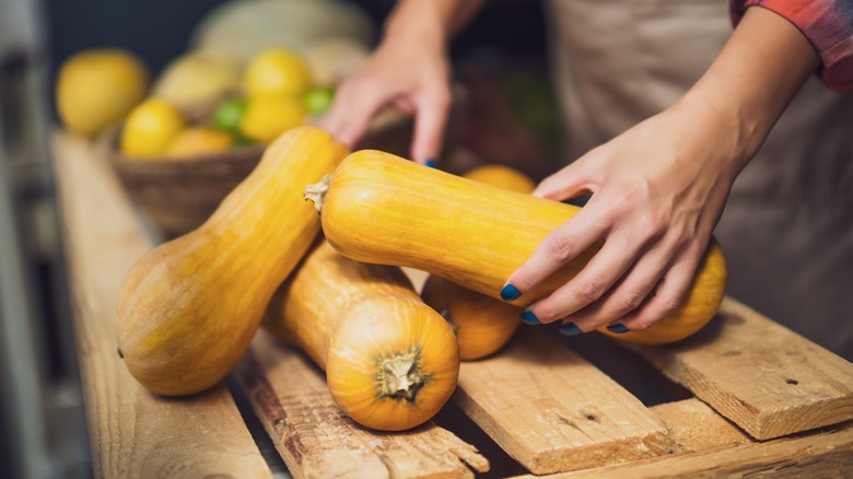Two popular types of winter squash are the butternut and buttercup squash. Although they have similar-sounding names, these two couldn't look any more different from each other, with the buttercup round and green and the butternut elongated and pinky beige. Aside from their physical distinctions, there are also nuanced variations between the two. Find out what these are since these differences can affect not just the flavor but also the texture and consistency of the dishes that you add them to.
