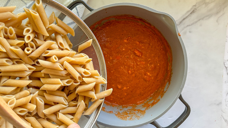 If you want your pasta to have a few more vegetables you can incorporate mushrooms, spinach, or sun-dried tomatoes. "Before you add the sauce to the pot in step nine is a good time to saute up any additional vegetables you want to include," Hahn says. "Just add a little oil to the pot, and cook the vegetables until they are tender, then add the sauce and Italian seasoning."