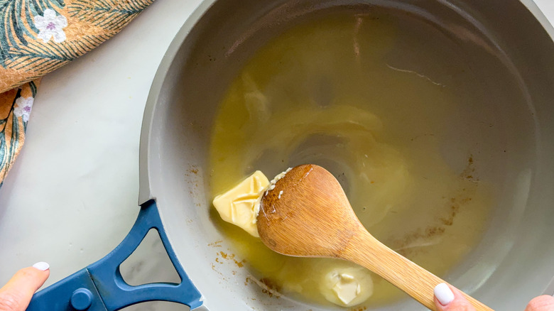 - Meanwhile melt the butter in a large frying pan over medium heat.