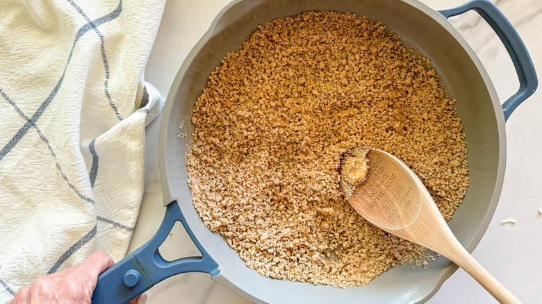 Stir for about 5 minutes until the breadcrumbs become toasted and fragrant.