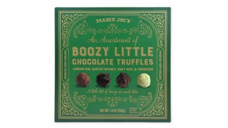 Trader Joe's is proud of its affordable prices and array of novelty products, including its Boozy Little Chocolate Truffles assortment. This box features four flavors, including London gin, scotch whisky, Navy rum, and Prosecco, so there is definitely a great variety of flavors in every box. Even if Trader Joe's isn't a fine chocolatier brand, it was successfully able to infuse flavors into each truffle and not skimp out on the chocolate quality, either. That being said, we don't expect to see these truffles make their way into the Trader Joe's Hall of Fame anytime soon since there are much more well-known products out there. Instead, it's just one of the brand's well-kept secrets.