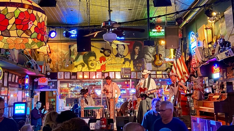 Okay, fine — so you've made it to the chaos of Broadway. What are you thinking? Where am I not going to get ripped off or a drink spilled all over me? Where can I hear some real country music? Where can I get a damn sandwich around here? Glad you asked. Robert's Western World calls itself "Nashville's Home of Traditional Country Music." They're famous for the bands that — seven days a week — light up the crowded barroom with outlaw, honky-tonk, and Bakersfield sound-country. It's one of the few unbudging strongholds preserving the old-school sound around town.