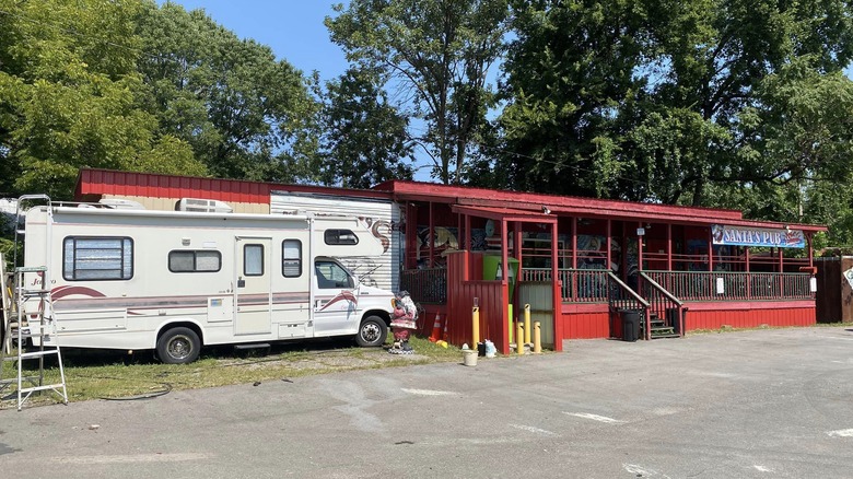 If you're looking to get away from Broadway — far away — it might behoove you to make the trek out to Santa's Pub. This is Nashville's own Christmas-themed dive with a house Santa or two of its own. Seriously, there are Santa figurines all over the property, but the owner, Denzel Irwin, looks much like little Saint Nick himself: an older fella with long white hair and a beard who often wears overalls and a red plaid flannel shirt.