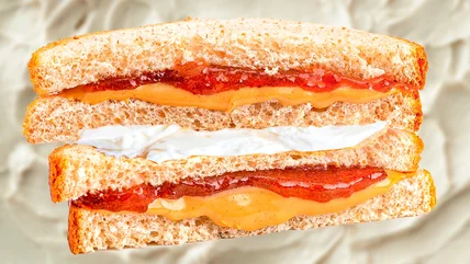 Peanut butter, jelly, and cream cheese is a difficult combination to mess up, so enjoy trying new flavors and combinations. Drizzle slices of toast with maple syrup or balsamic vinegar to build depth in flavor, or sprinkle sesame seeds or pine nuts to add extra crunch to snack time. Incorporate seasonal fruit like apple slices or berry compote to complement the sweetness of your dish, or replace fruit options with a drizzle of hot honey. If you're looking for a rich, satisfying treat, peanut butter and jelly sandwiches slathered with cream cheese are waiting for your call.