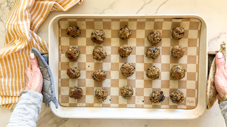 - Place the balls on a parchment paper-lined baking sheet and put in the oven for 20 minutes.