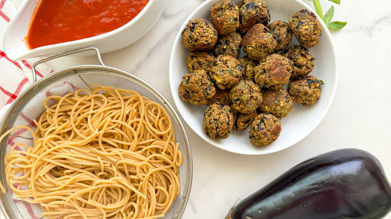 - Serve the eggplant balls on their own or with pasta and sauce.