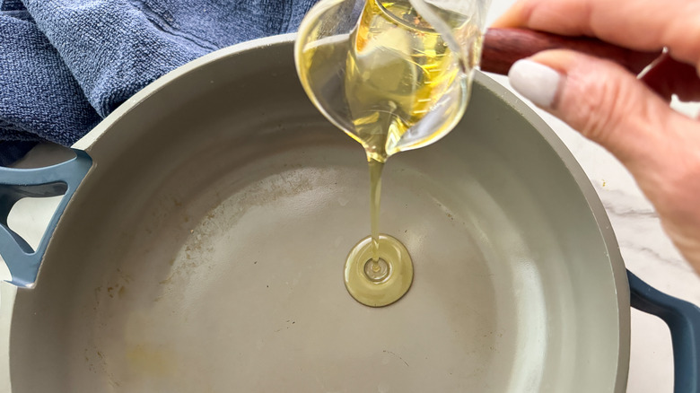 - Add 1 tablespoon oil to a large frying pan over medium-high heat.