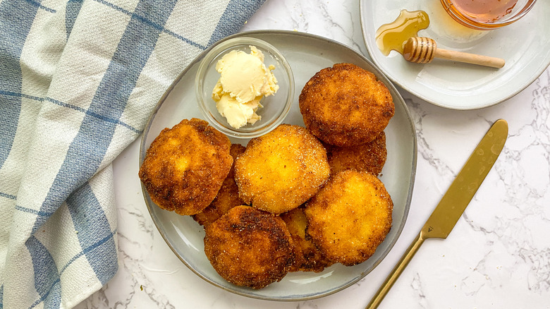 They're also remarkably simple to make, with only five ingredients and a quick pan fry. Skip the pancake breakfast and make a stack of crispy corn pones to start the day off right when you're craving cornbread but don't have time to bake. Serve them with butter and honey for a classic combination.