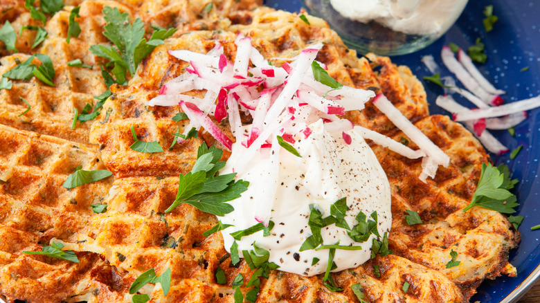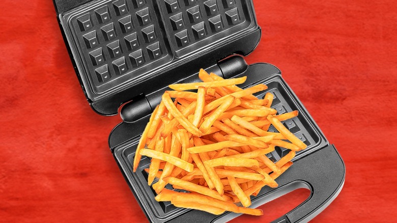 There's nothing more delicious than french fries fresh out of the fryer. It's hard to beat the textural balance between crunchy and pillowy that hot oil instills in a potato. Fresh fries may be the perfect food, but it's a fleeting perfection. Leftover fries are sad, limp, and cold remnants of their former selves that you may consider unsalvagable. Before giving up on leftover french fries, break out the waffle iron to revive them through a delicious transformation.