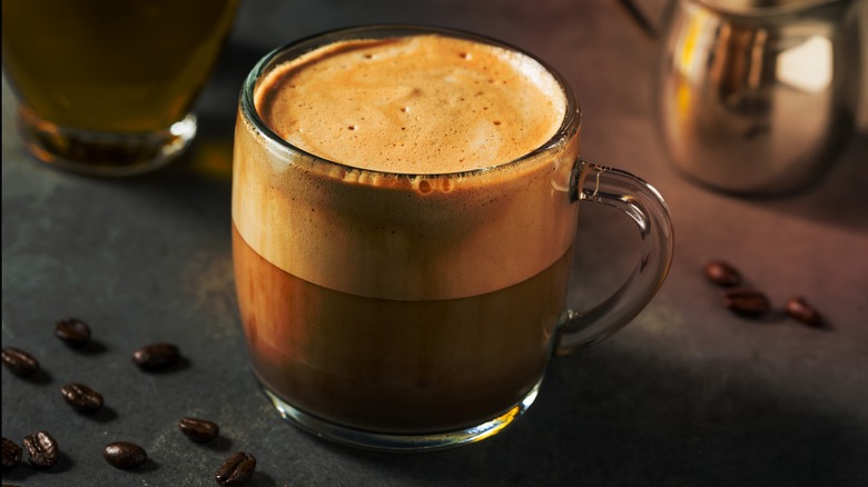 You can also pour the coffee and olive oil into a blender and watch your brew transform into a creamier drink. Without a steamer, you could also use a milk frother and froth the olive oil along with the milk before adding the creamy, fluffy cold foam mixture to your coffee. There is so much room to be inventive, here. Try this hack: Add ice, coffee, milk, and olive oil to a mason jar and shake it until it's frothy and creamy.