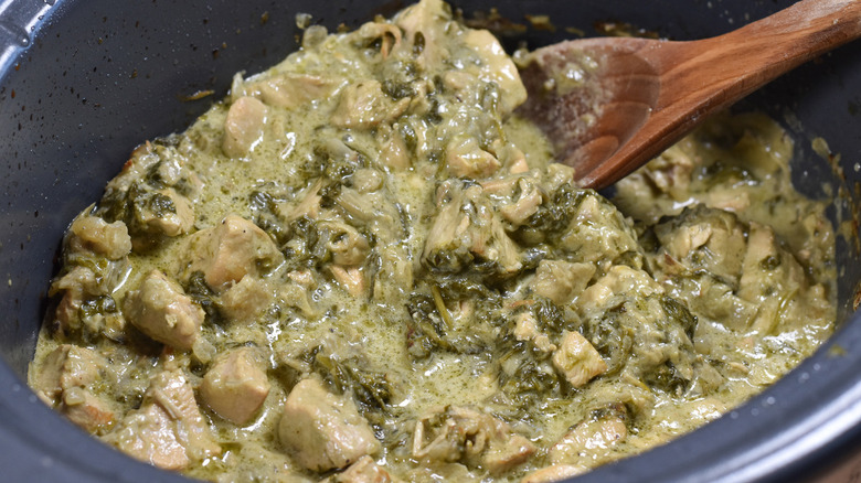 Our recipe for crockpot spinach and artichoke chicken contains everything that you love about the appetizer dip. But by including chicken, it becomes much more filling and satisfying — and appropriate to serve as an entree. What's better than getting to eat your favorite appetizer for dinner?