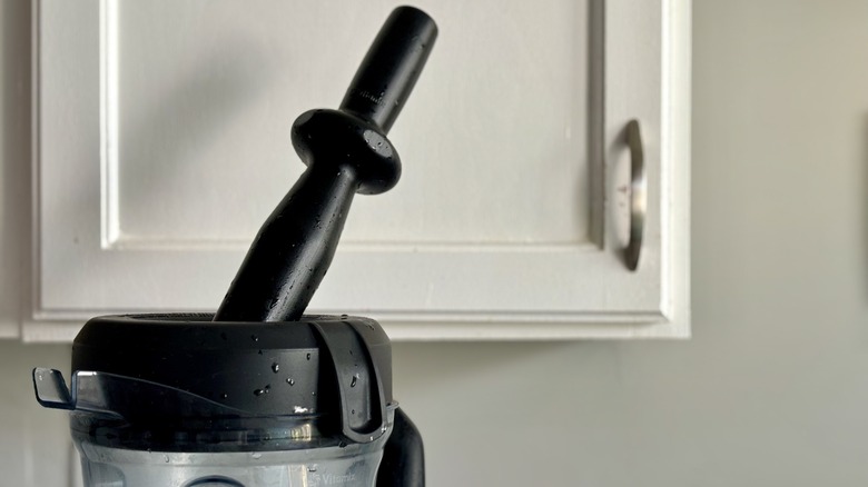 You likely noticed your blender came with a bulky tamper. That long black stick that came with your Vitamix is a valuable tool that helps push ingredients into the blades for more efficient blending. This is especially helpful when working with thick or stubborn mixtures and tough ingredients. If you notice your Vitamix blender stalling or struggling to process ingredients, pull off the lid plug with the blender still running and stick the tamper in.
