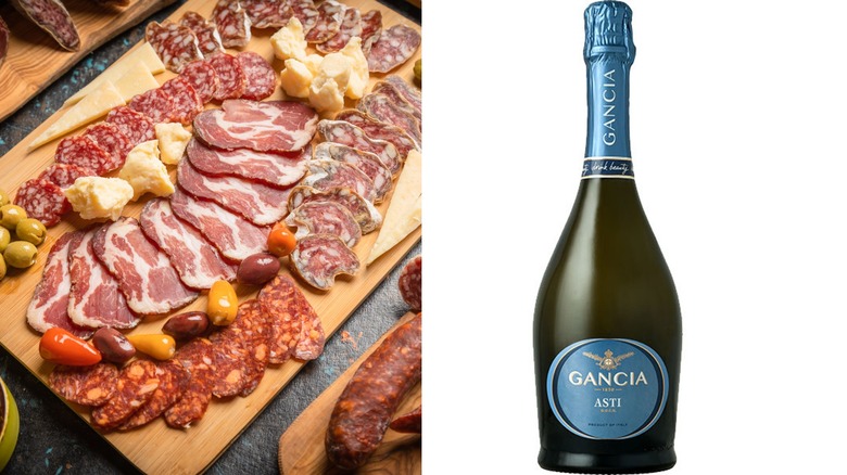 A charcuterie board adds a sophisticated touch to any event, regardless of whether it's going to win design awards. A simple selection keeps the prep work easy while ensuring there's something for all tastes. Include sliced salami or chop up salami sticks for a more textured choice. Then, pick up some prosciutto and add a twist with spicy chorizo or soppressata. Include some breadsticks, crackers, or sliced baguette to pair with your meaty offerings. While you might be accustomed to serving charcuterie with red wine (especially if you've internalized the notion that meat requires red wine), a sparkling option is an appealing pairing that's far more festive.