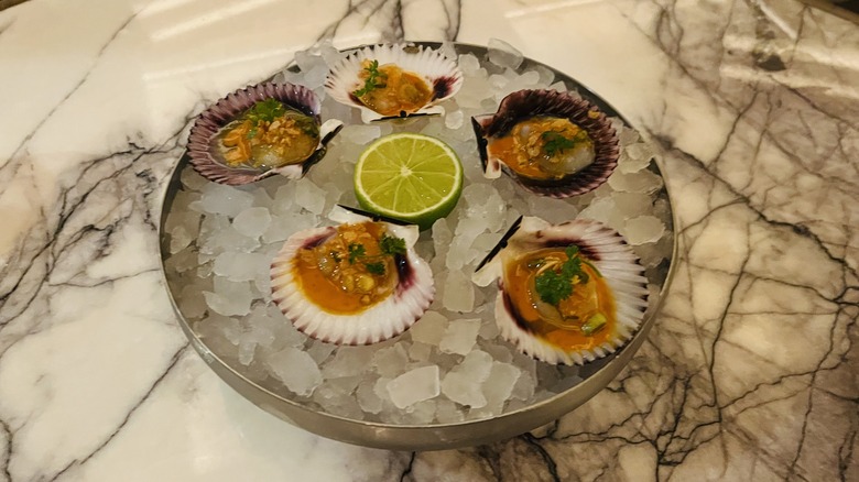 One of includes a signature dish on the menu named after arguably the most important person in Flay's life. Featured a la carte on the extensive raw bar menu and on the impressive "Tower Magnifique," the Bay Scallops Sophie are an ode to Flay's daughter, who has an affinity for crustaceans, as he explained to Tasting Table Senior Editor Alexandra Cass in an exclusive interview. "Sophie has been a shellfish lover since the day she was born," Flay noted. "I mean, literally, she was eating mussels and clams when she was like six months old. Shellfish is always her thing."