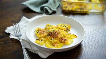 Cooking vegetables au gratin is a popular way to give them a boost in flavor and texture. The term refers to cooking food with a browned and crispy crust, which is usually made from breadcrumbs or grated cheese. Potatoes au gratin may be the most well-known dish employing this technique. It features not only a browned crust on top but a thick, creamy cheese sauce in the interior of the dish between thin slices of potatoes. Many vegetables can be prepared au gratin, including broccoli, spinach, cauliflower, parsnips, leeks, fennel, corn, and squash. One vegetable that people may not immediately think of as an option for an au gratin dish is the humble turnip, but we assure you it's a delicious candidate.