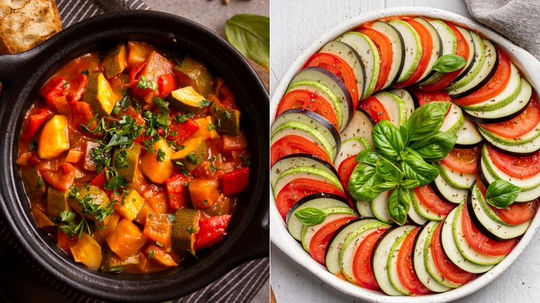 As beloved as the famous ratatouille dish may be, it's possible that its 2007 namesake animated film made the meal look a little more substantial than it really is. The peasant dish was traditionally made to satisfy hungry bellies with nutritious vegetables, but times have changed, and so have our appetites. Most people will probably crave some protein to go alongside what is essentially a vegetable medley. That's why many modern versions of ratatouille are served with healthy, lean meat options like grilled chicken or fish. And if you order ratatouille from a bistro hoping to get the visually appealing spiral-patterned meal from the film, you may be in for a rude awakening.