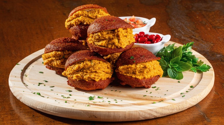 Originally, this fritter was completely plant-based: Made from black-eyed beans and onions beaten into a paste, shaped, and fried in palm fruit oil known as dendê, acarajé offers a crispy shell with a creamy heart. Beware if you have allergies; these days, it's stuffed with shrimp-containing paste such as vatapá or carurú. Yet, vegan options exist, replacing those with salad or omitting shellfish.