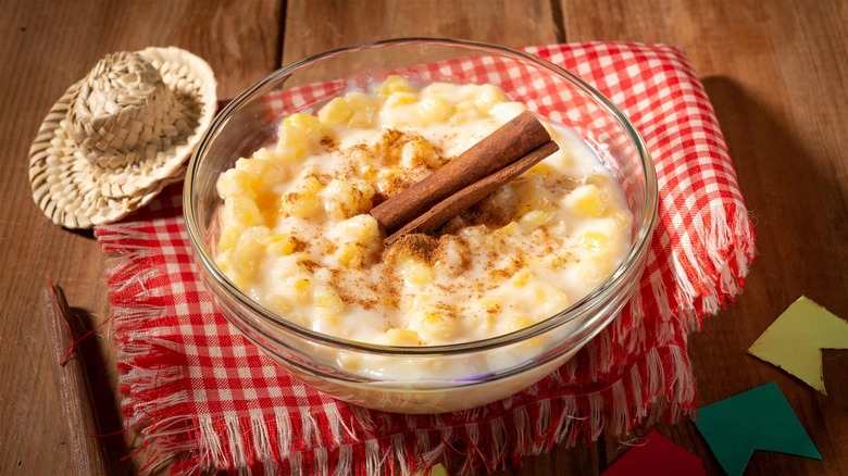 Originating in the 17th-century Afro-Brazilian community and enslaved population's culinary tradition, it transforms hominy ─ white corn made tender through nixtamalization ─ into a dessert by simmering it with milk, shredded coconut, and sugar. The outcome is a spoon-worthy, soupy substance that marries spices with sweetness in a dish that highlights hominy's versatility. Served warm in the winter, it is more akin to porridge, whereas its chilled pudding-like form is preferred in the hotter months.