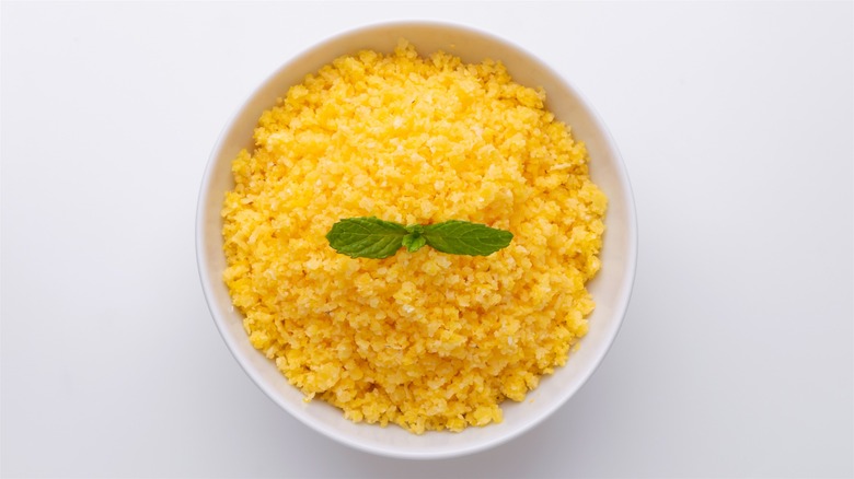 Brazil has many variations of couscous dishes, but, for the most part, they're nothing like their North African namesake. After the Portuguese colonizers introduced the original to Brazil, it underwent some major changes. For one, "cuzcuz" is mainly made of cornmeal, not wheat. Unlike the lavish, Bundt-shaped cuzcuz Paulista that relies heavily on shrimp, eggs, and meat, cuzcuz Nordestino is a humble vegetarian-friendly breakfast dish. Traditionally, it's steamed, rather than boiled, in a special cuscuzeira pan, resulting in a sliceable porridge.