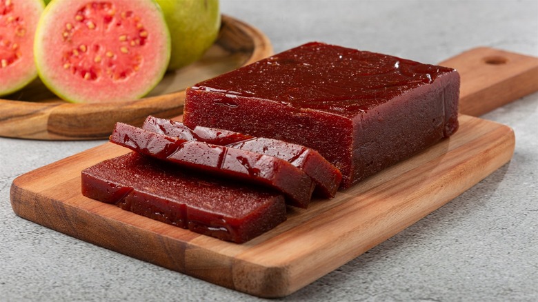 This quintessentially Brazilian fruit preserve can be classified as fruit cheese with a romantic, nostalgic undertone. It is crafted from guava pulp and sugar, traditionally made with fruit peel in copper pots, and cooled in banana leaf-lined cedar boxes to achieve a sliceable consistency. Today's goiabada comum might skip the peels and copper pots but retains its charm. It is available as a creamy spread commonly used as the bolo de rolo filling, or as a firmer option used for slicing into desserts.
