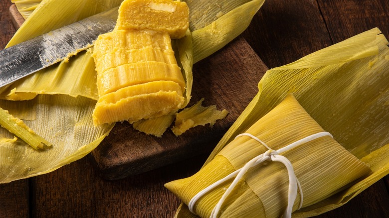 If you've ever tried Mexican tamales, you might think nothing about pamonha could surprise you, but you'd be wrong. Unlike its hominy-based cousin, pamonha (read as pah-MOHN-yah) celebrates fresh corn, so it's no wonder it takes center stage during the June corn harvest festivities. Its name, stemming from the indigenous Tupi language, alludes to its sticky, mushy texture that's carefully encased in corn leaves. Inside, you'll find fresh corn kernels blended with coconut, milk, and sugar, or a mix of cheeses for a savory twist.
