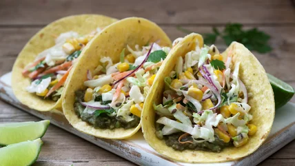 Beyond its nutritional value, broccoli slaw is a delicious, crunchy addition to any taco. You can make your own with veggies you have on hand, or buy a store-bought bag which will likely consist of grated broccoli stems, shredded carrots, and shredded red cabbage. Layer it on your tacos as is for a vegetal crunch, or make it more into a traditional coleslaw by whipping up your favorite mayonnaise or Greek yogurt-based dressing.