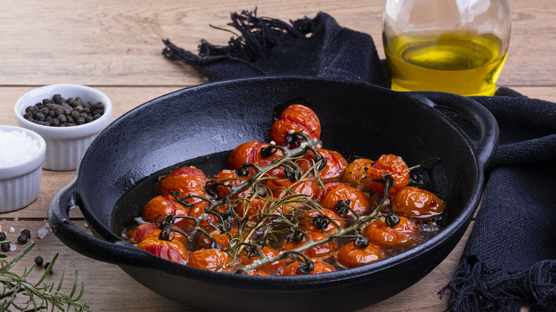 Though they're already quite sweet, cherry tomatoes take on a richer taste under the heat of the oven. When roasted, the flavors concentrate, creating delicious tomato confit that can be spooned over pasta, meat, salads, and more. To amp up the sweetness of cherry tomato confit, add Aleppo pepper.