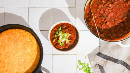 The pepper's deep flavor profile works in our recipe because it compliments the richness of brisket, but it's not the only type of chili you can cook with the ingredient. A simple beef chili will also benefit from the flavor profiles of ancho chiles. To skip red meat, swap the bell pepper for ancho chiles in hearty turkey chili. It'll also take the smokiness to another level in smoky chicken chili or in your family's coveted chili recipe. We don't think you'll regret the ingredient swap so long as you appreciate bold flavors in every spoonful.